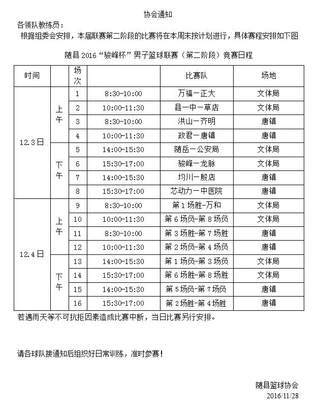 賽程安排 │ 隨縣聯賽決賽階段賽程安排                                                                                                      隨縣2016“駿峰杯”男子籃球聯賽