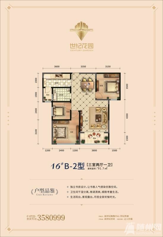 世紀花園目前主推戶型:①91㎡二室半 推薦指數: 適宜人群:老兩口,單身男女購置婚前財產,投資 推薦理由:總價低,約30萬起價,戶型良,方正無浪費! ②101㎡二室半 推薦指數: 適宜人群:一家三口,老兩口, ...