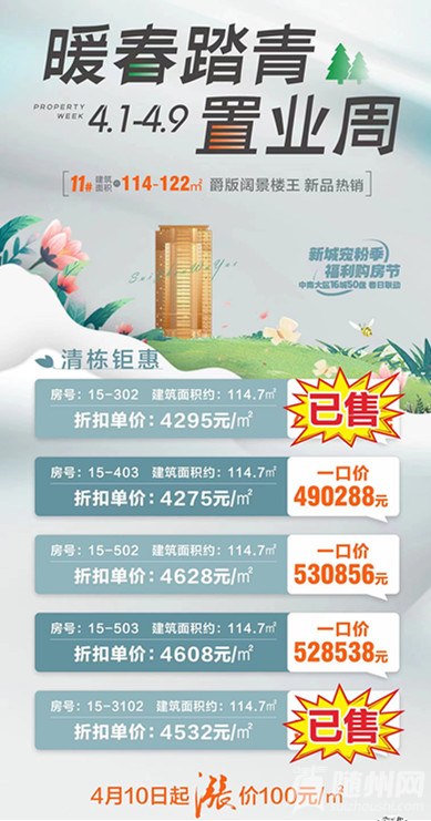 清明節特惠 一口價房源余3套 4月10日起漲100元/㎡ VIP熱線:13581395832
